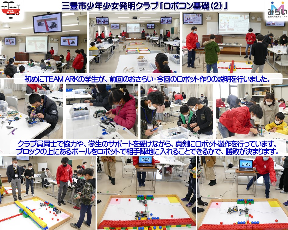 令和3年1月30日(土)詫間キャンパスにおいて、三豊市少年少女発明クラブ「ロボコン基礎(2)」が開催されました。 今回も詫間キャンパスロボコンチーム「TEAM ARK」の学生が主導でロボット教室を行いました。