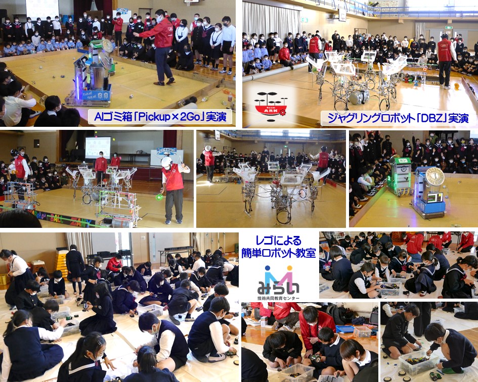 その後、4・6年生は、レゴを使った「簡単ロボット教室」を行い自分でロボット作りを体験し改良しながら楽しくロボットを体験できました。