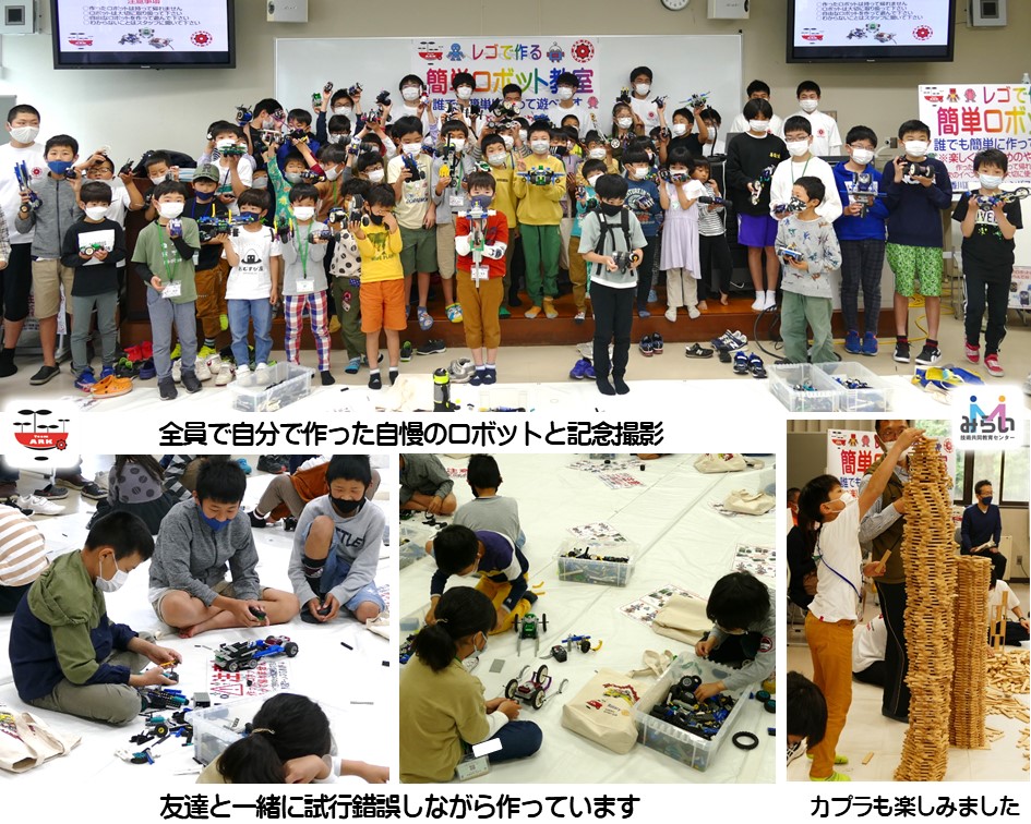 今回は、レゴスパイボットという赤外線コントローラを使ったラジコンに、レゴのタイヤやブロックを組み合わせてオリジナルのロボットカーを作りました。この活動は“自分で考え・作って・楽しむ”ことを目的としています。