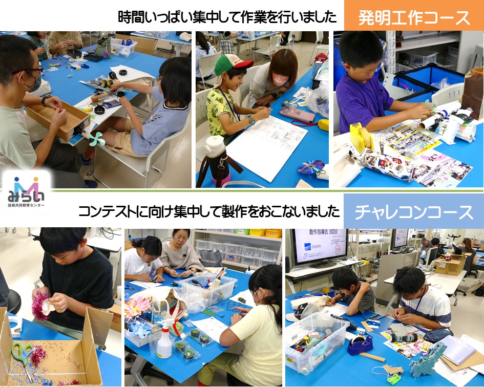 両コースとも自分のアイディアを実現するため、困ったり悩んだりした時や難しい工作作業は、指導員、学生、保護者の力を借りながら進めています。