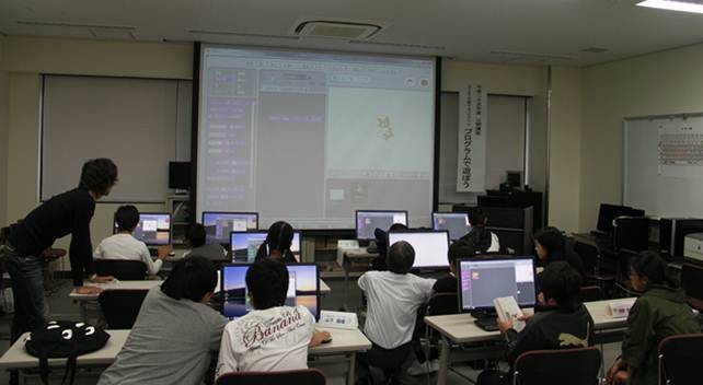 詫間キャンパス専攻科棟1階共同利用実験室 公開講座「はじめて体験するプログラム -プログラムで遊ぼう-」