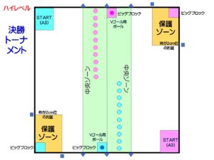 ※ハイレベルクラスの保護ゾーンには、お盆を設置。お盆の中にボールを運び込むこととする(予定では、高さ2cm程度の縁のあるお盆)。